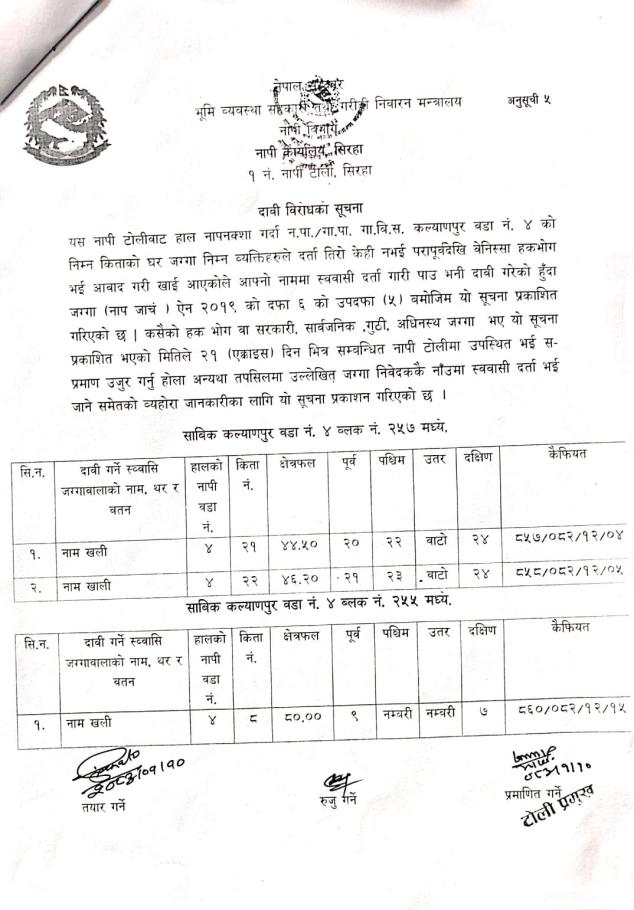 श्री योजना तथा अनुगमन शाखा, कल्याणपुर न.पा. सिरहा श्री प्राविधिक शाखा, कल्याणपुर न.पा.सिरहा