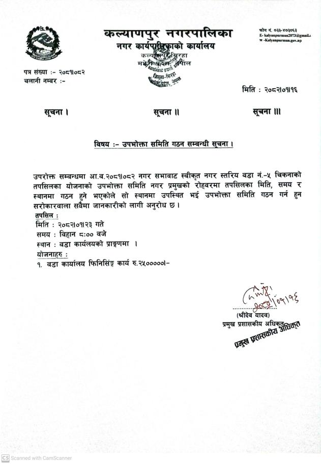 श्री योजना तथा अनुगमन शाखा, कल्याणपुर न.पा. सिरहा श्री प्राविधिक शाखा, कल्याणपुर न.पा.सिरहा