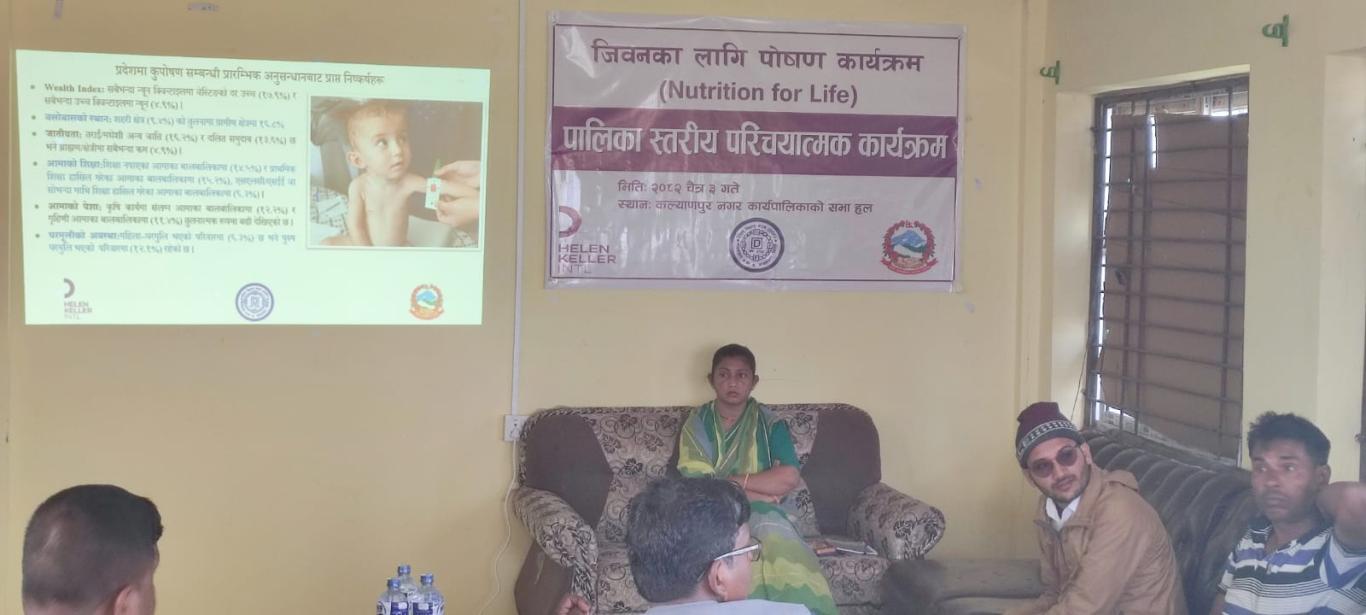 दलित विकास मञ्च (DDF) सिरहाको आयाजोनामा कल्याणपुर नगरपालिकाको समन्वय र हेलन केलर इन्टरनेशनलको साझेदारीमा पालिका स्तरिय परिचयात्मक कार्यक्रम कल्याणपुर नगरपालिकाको कार्यवाहक मेयर श्रीमती रेखा कुमारी यादव ज्यूको अध्यक्षतामा ूजिवनका लागि पोषण कार्यक्रमू सम्मप