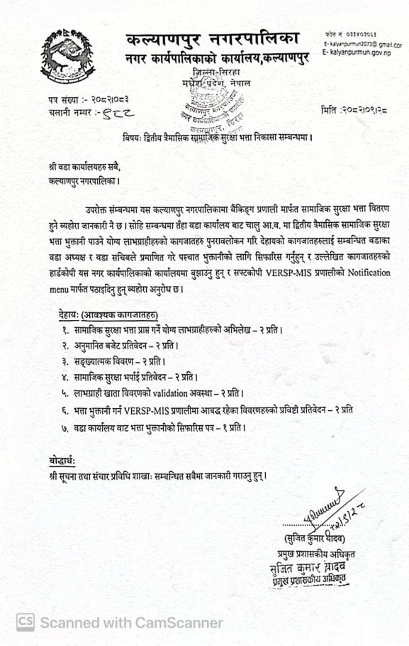 द्वितीय त्रैमासिक सामाजिक सुरक्षा भत्ता निकासा सम्बन्धमा ।
