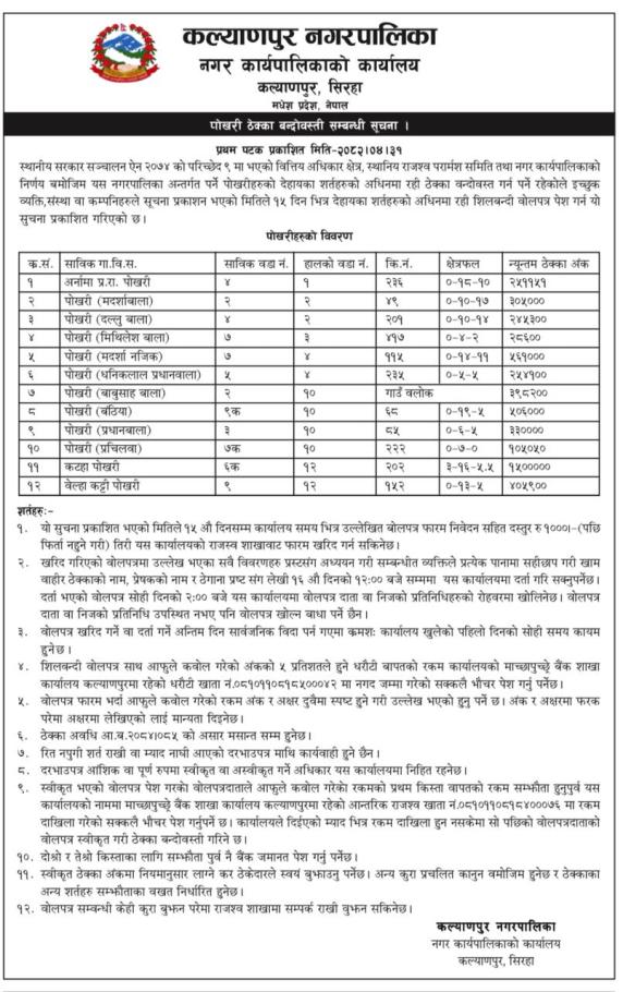 » पोखरी ठेक्का बन्दोबस्ति सम्बन्धी सूचना