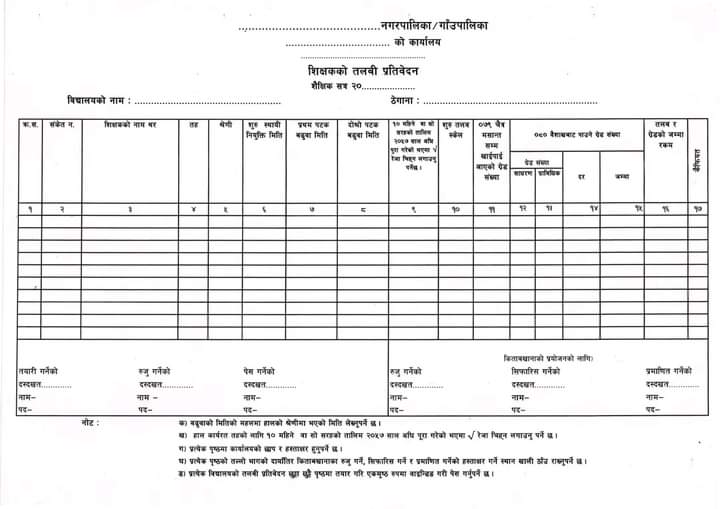 शिक्षकको तलबि प्रतिबेदन सम्बन्धमा