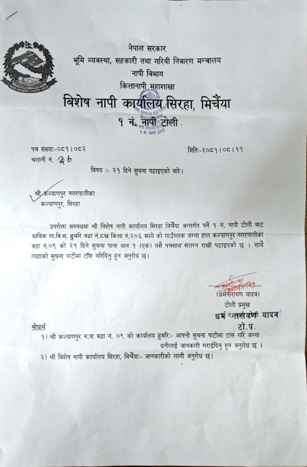 श्री योजना तथा अनुगमन शाखा, कल्याणपुर न.पा. सिरहा श्री प्राविधिक शाखा, कल्याणपुर न.पा.सिरहा
