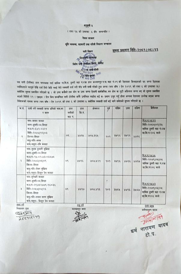 श्री वडा कार्यालयहरु सबै कल्याणपुर नगरपालिका, सिरहा