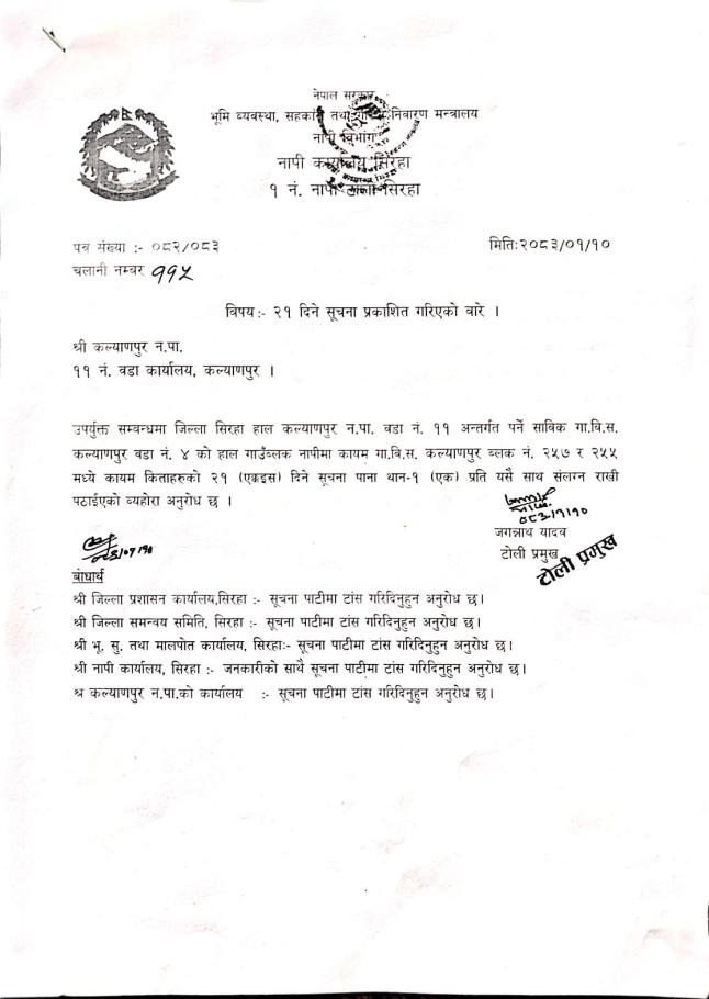 » २१ दिने सुचना प्रकाशित गरिएको बारे |