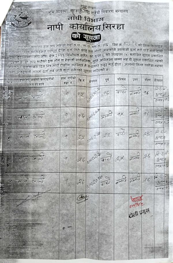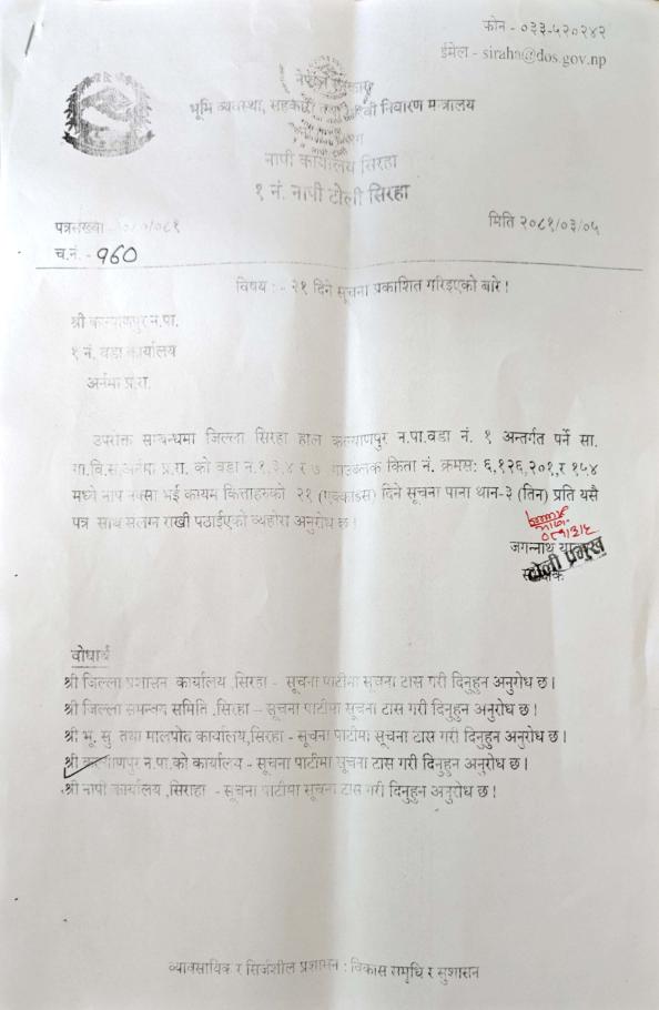 » २१ दिने सूचना प्रकाशित गरिइएको बारे ।